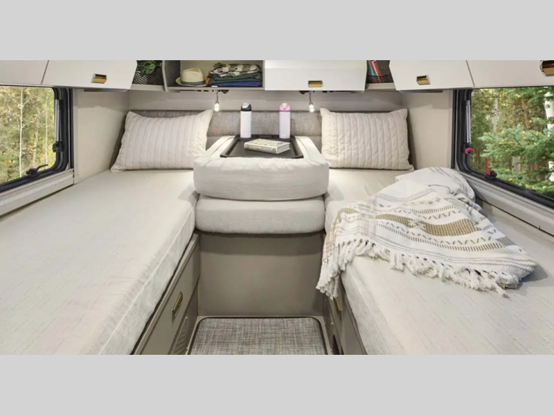 Sleeps 4 Slides 1 Length 25 ft 8 in Ext Width 7 ft 7 in Ext Height 10 ft 7 in Int Height 6 ft 8 in Interior Color Hygge Haus ll, Mod Allure ll Exterior Color Dune Frost Deluxe Graphics. Misty Lake, Precious Metals, Smokehouse Full-Body Paint Hitch Weight 5000 lbs GVWR 11030 lbs Fresh Water Capacity 30 gals Grey Water Capacity 46 gals Black Water Capacity 47 gals Furnace BTU 25000 btu Fuel Type Diesel Engine 2.0L High Output Turbo Diesel 4-Cylinder Chassis Mercedes-Benz RWD Sprinter Fuel Capacity 24.5 gals Wheelbase 170 in Number Of Bunks 1 Available Beds Twin Beds with King Conversion Refrigerator Type 12V Two Door Compressor Driven Refrigerator Size 10 cu ft Convection Cooking Yes Cooktop Burners 2 Shower Size 25" x 30" Number of Awnings 1 Axle Weight Front 4410 lbs Axle Weight Rear 7720 lbs LP Tank Capacity 50.76 Water Heater Type Truma AquaGo Comfort Plus Tankless AC BTU 15000 btu Basement Storage 80.9 cu. ft. TV Info 32" LED HDTV Awning Info 16' Power with LED Lights & Bluetooth Control Gross Combined Weight 15250 lbs Shower Type Standard Electrical Service 30 amp Similar Floorplans